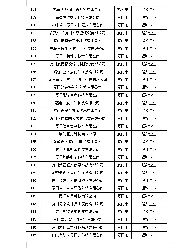 为深入实施做大做强做优数字经济行动计划,加快培育壮大数字经济创新企业,经企业申报、专家核验等程序,省数据管理局初步确定2025年度福建省数字经济核心产业创新企业拟入选名单,现予以公示。