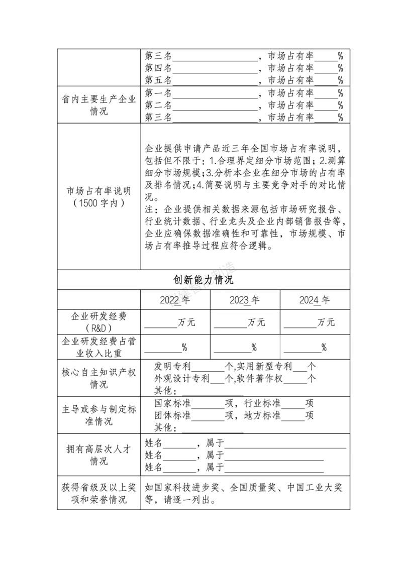 1.福建省制造业单项冠军企业申报书