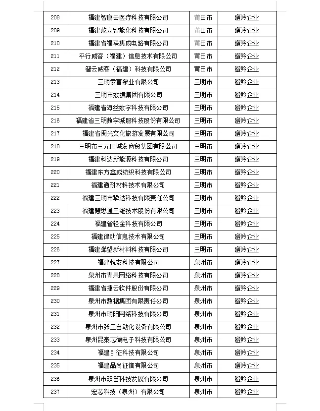关于2025年度福建省数字经济核心产业创新企业征集遴选结果的公示